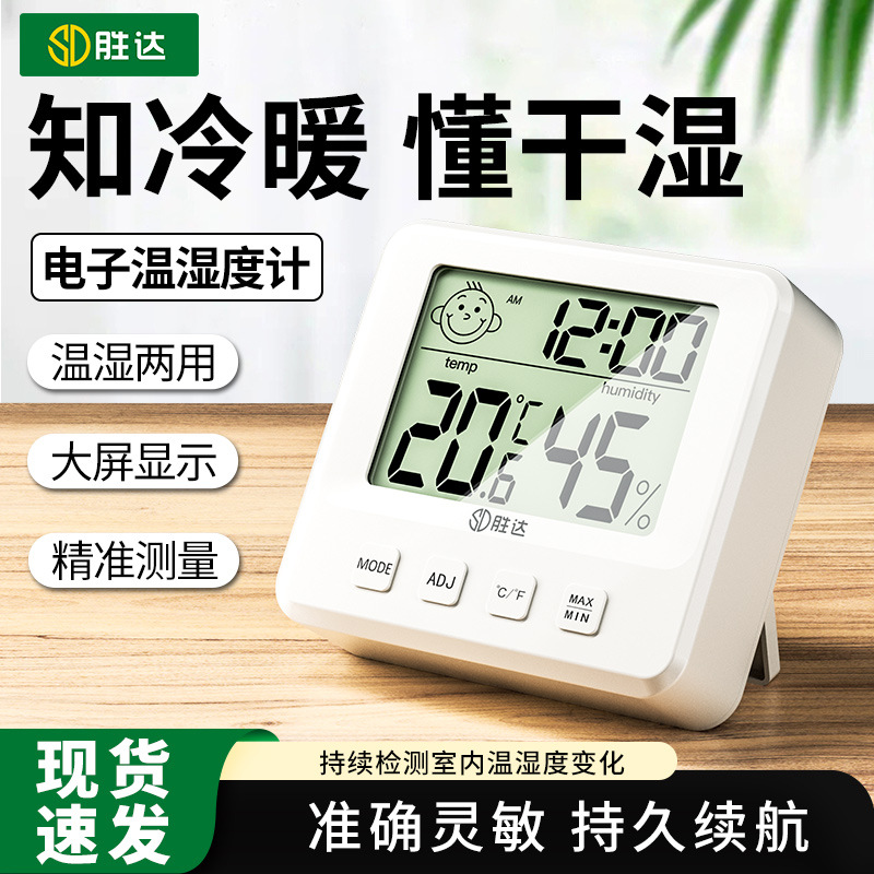 Shengda hygrometer wajah tersenyum, termometer higrometer mini presisi tinggi untuk rumah tangga