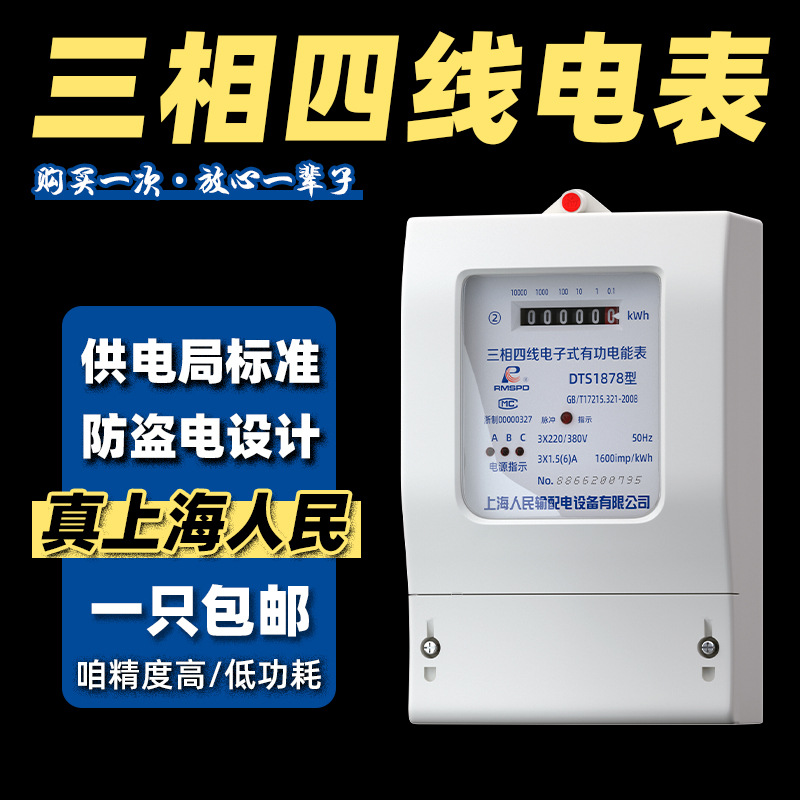 Shanghai meteran listrik tiga fase empat kawat, meteran listrik 380V, meteran elektronik rumah tangga, meteran listrik fase tunggal presisi tinggi