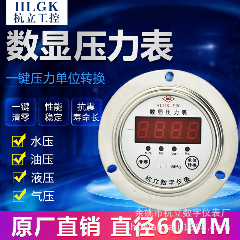 HLGK-Y60 Smart Digital Pressure Meter Digital Tahan Guncangan Stainless Steel Tekanan Negatif Vakum-0,1 ~ 100MPa
