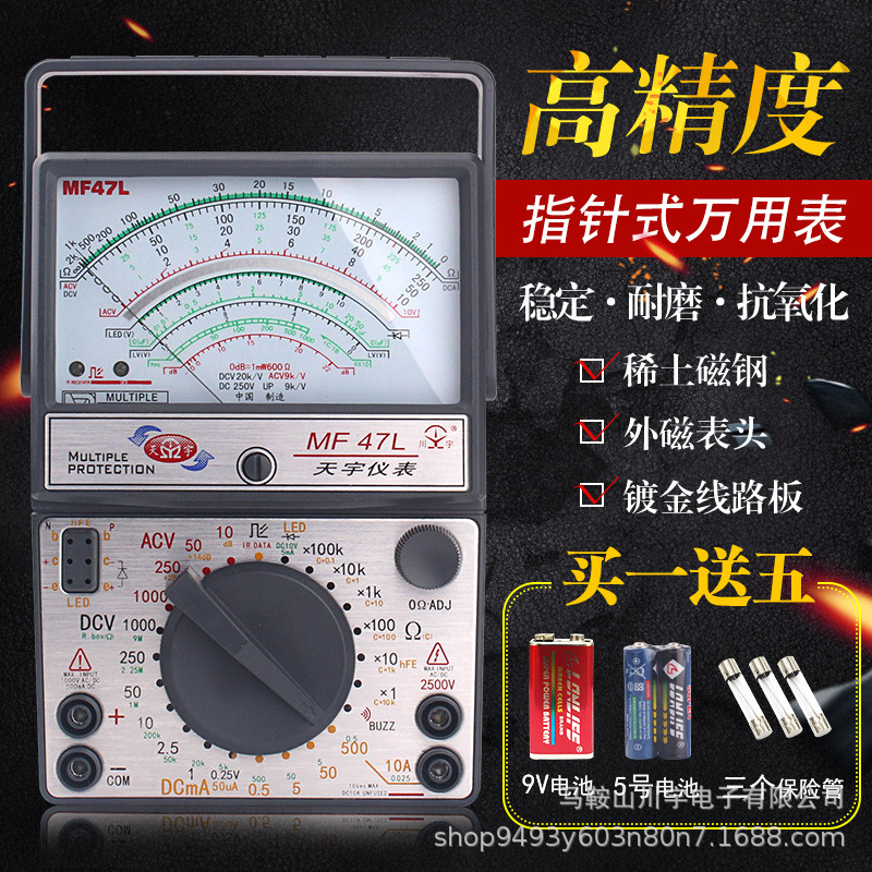 Nanjing Tianyu MF47 pointer multimeter mekanis, bel anti-pembakaran presisi tinggi perlindungan penuh magnetik internal universal
