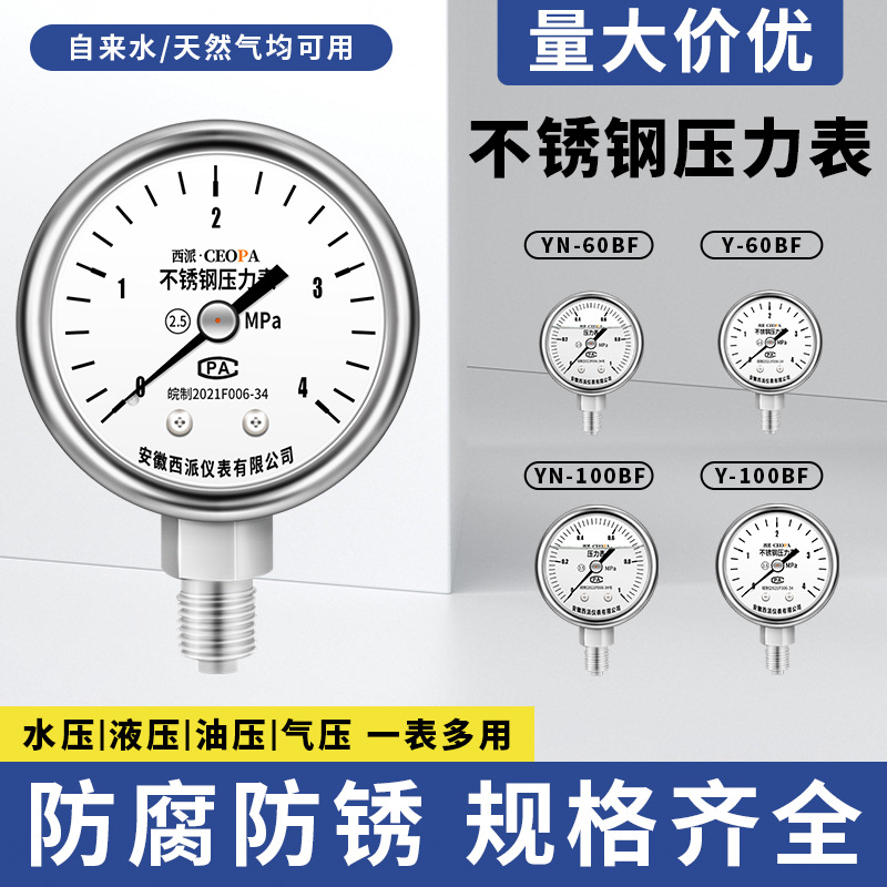 Produsen menyediakan Y100BF pengukur tekanan baja tahan karat semua tekanan baja tahan karat pengukur tekanan tahan benturan radial pengukur tekanan mikro