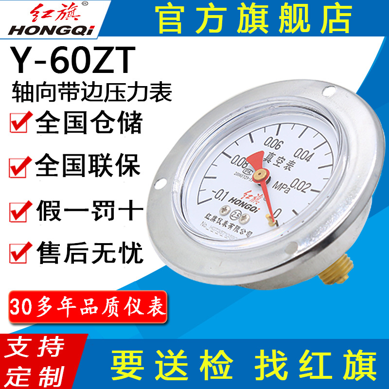 Alat ukur tekanan aksial Y-60ZT, instrumen bendera merah dengan tepi horizontal, pengukur tekanan koneksi belakang