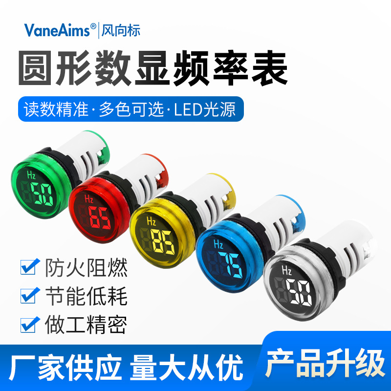 Tampilan Digital pengukur frekuensi 0-99Hz bulat kecil tampilan digital Hz lampu indikator merah kuning hijau pasokan pabrik