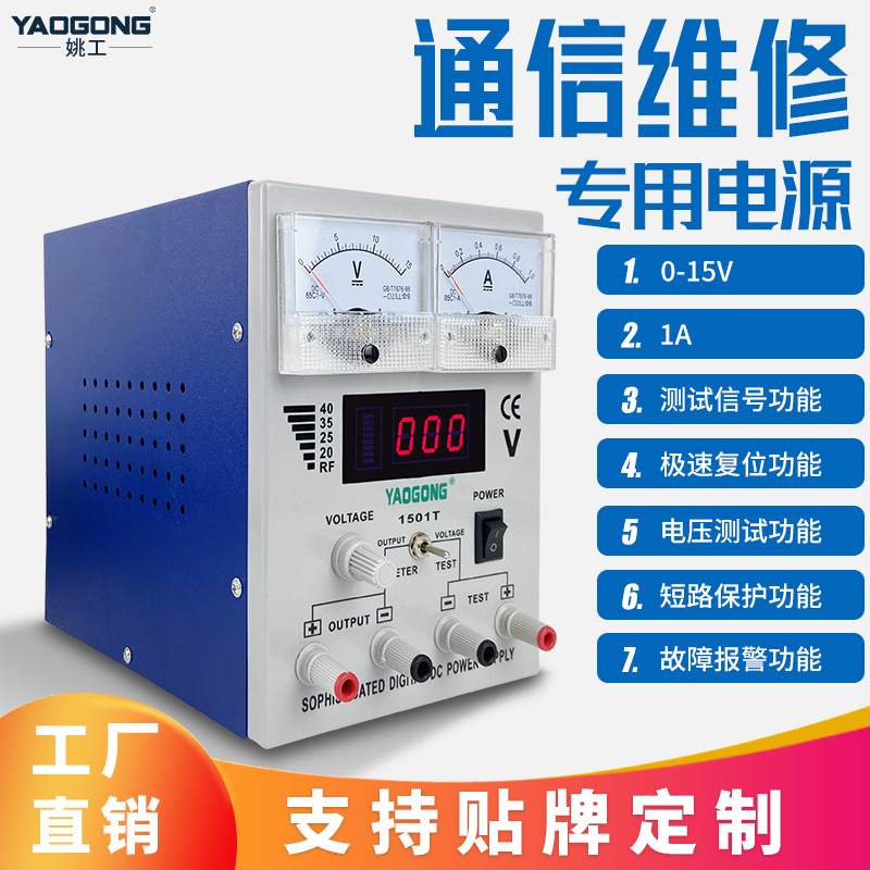 Catu daya DC tegangan stabil 1501T pemeliharaan komputer ponsel deteksi sinyal ammeter dapat disesuaikan suplai langsung pabrik 15V1A