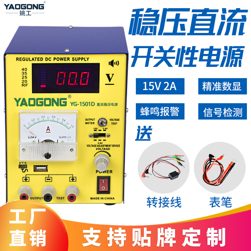 Yao Gong suplai daya DC tegangan stabil 1501D deteksi komputer telepon seluler dan pemeliharaan dapat disesuaikan ammeter 15V1A pasokan langsung pabrik