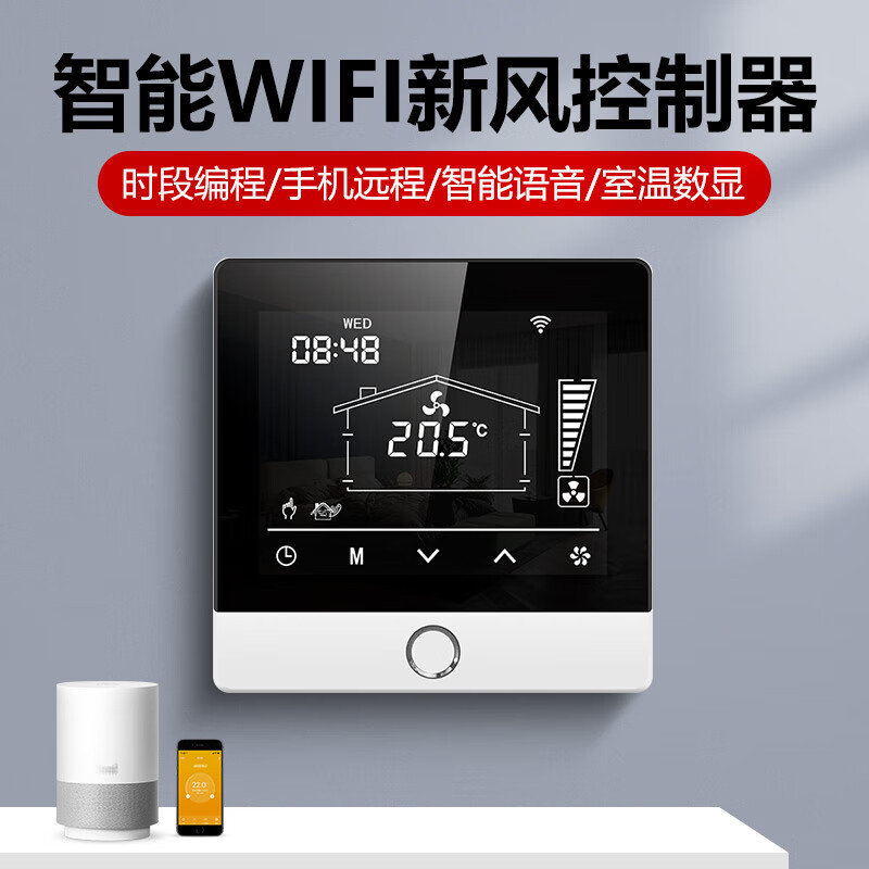 Panel kontrol udara segar LCD karbon dioksida deteksi WIFI remote 485 kipas baru saklar tiga kecepatan termostat