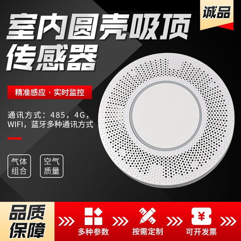Sensor langit-langit shell bulat dalam ruangan 485 komunikasi multi-fungsi karbon dioksida formaldehida detektor gas all-in-one