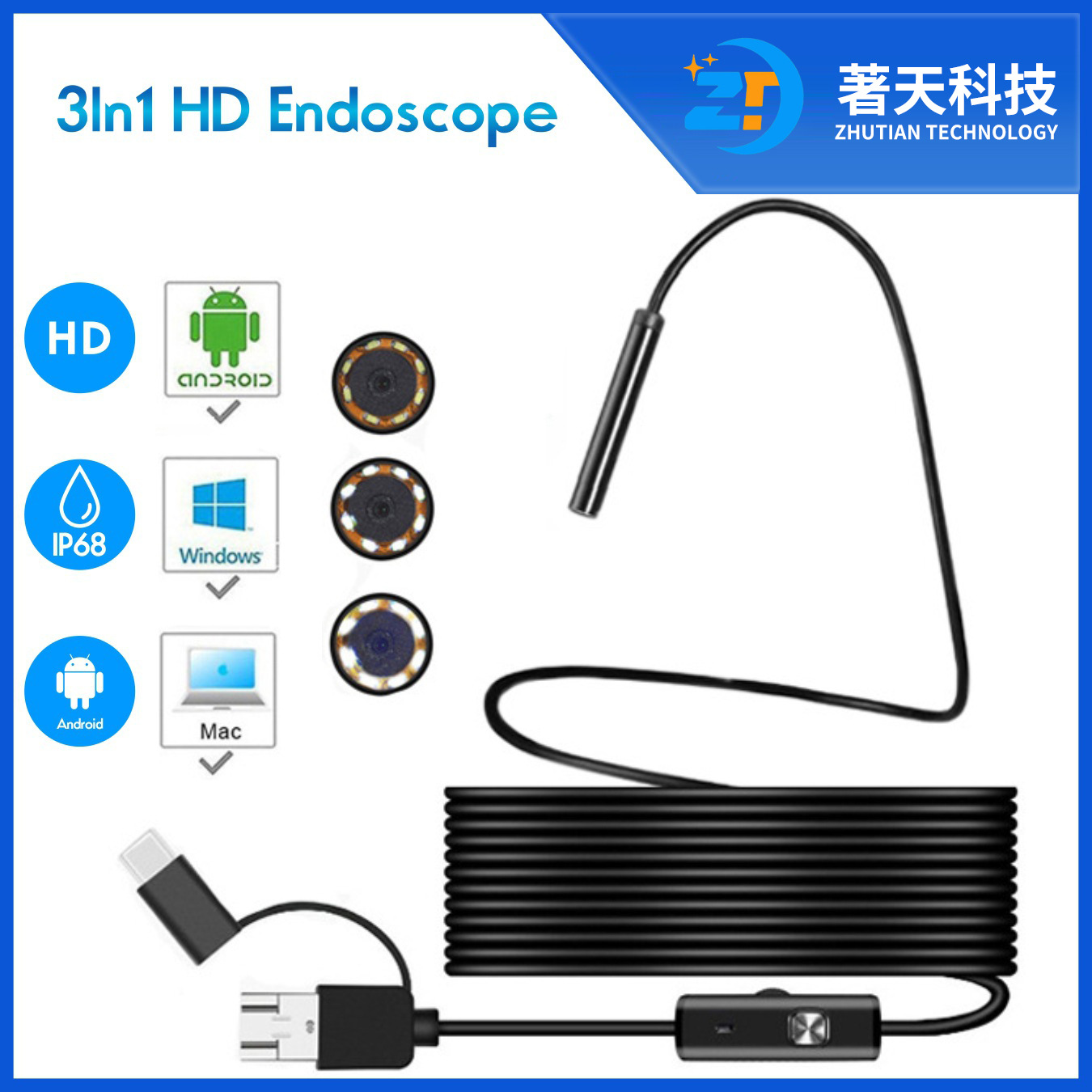 Endoskopi komputer ponsel, endoskopi HD 8mm tiga-dalam-satu 1200p pipa industri perbaikan otomatis