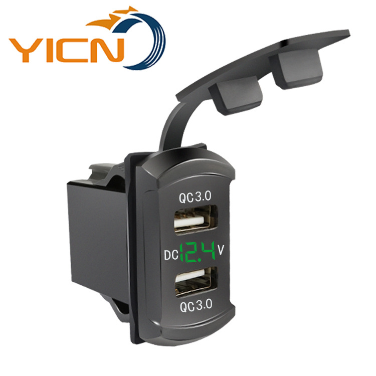 Pengisi daya ponsel mobil modifikasi, switch tipe dual SUB QC3.0 pengisian cepat deteksi voltmeter tampilan digital LED
