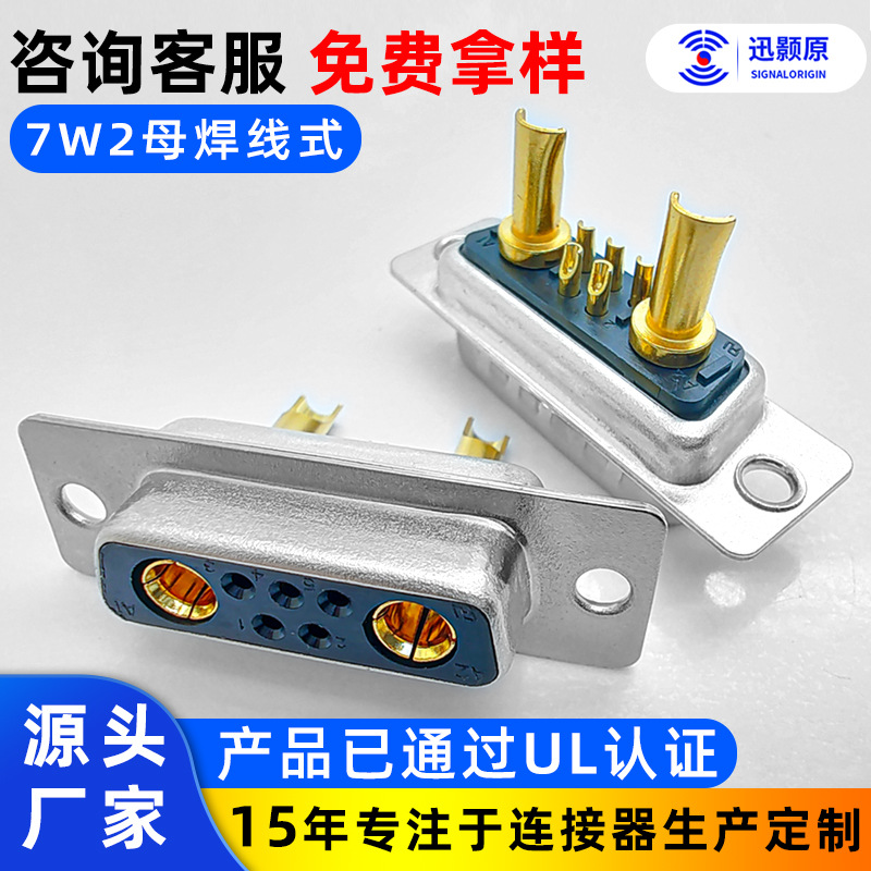 Konektor campuran 7W2 persegi panjang konektor arus tinggi pin mobil d-sub konektor padat tembaga berlapis emas kawat las