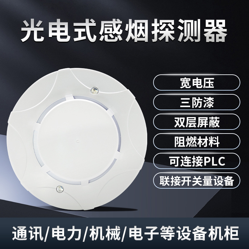 Detektor asap fotoelektrik kabel, alarm induksi asap, transmisi api 12V 48V, tahan api biasanya terbuka dan biasanya tertutup