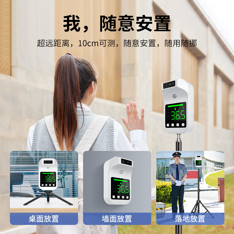 Termometer dahi baja tahan karat, braket latar belakang pistol suhu multifungsi, tripod lantai dapat ditarik tunggal mikro foto ponsel