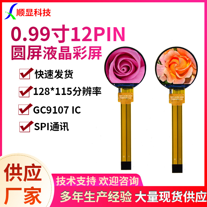 Layar Bulat TFT 0,99 Inci 128*115 Resolusi Layar Tampilan Komunikasi SPI 9107 Tampilan Boneka AI