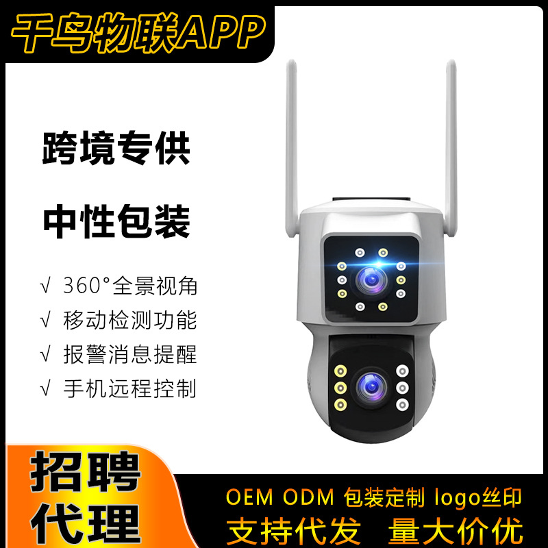 Kamera pengawas nirkabel lintas batas, kamera pengawas layar ganda 24 jam penglihatan malam ponsel jarak jauh