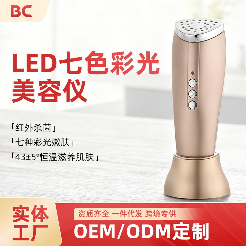 Peralatan Kecantikan LED tujuh warna genggam, instrumen kecantikan rumah tangga multifungsi penghilang jerawat dan peremajaan kulit