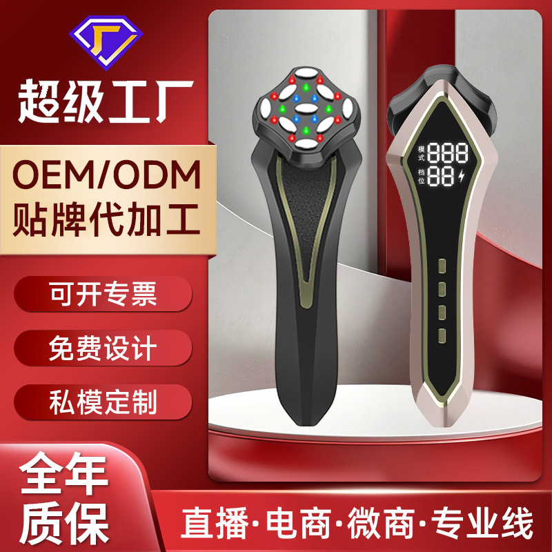 Instrumen Kecantikan peremajaan wajah v panas lintas batas penghilang leher getaran arus mikro EMS mengangkat dan mengencangkan pemijat rol ganda