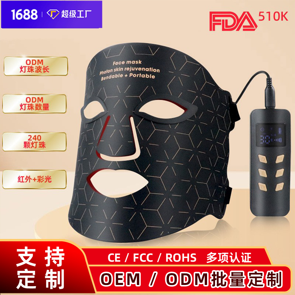 Masker Cahaya Merah Silikon LED Masker Wajah Peremajaan Kulit Photon untuk Rumah Tangga dengan Leher Masker Topeng Kecantikan Cahaya Biru Merah