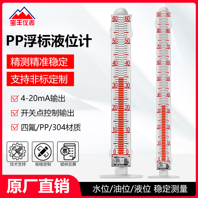 PP pengukur level tutup magnetik, pengukur level tangki air 4-20mA dengan saklar alarm, pengukur tingkat tutup magnetik