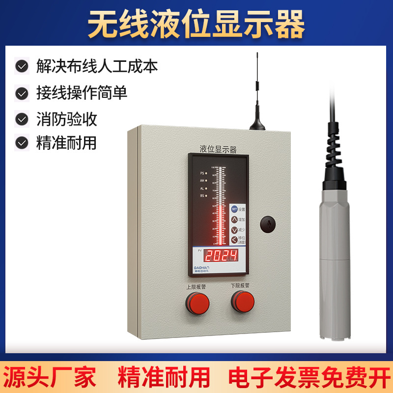 Tampilan level air cair nirkabel Remote, instrumen alarm kendali otomatis ketinggian air kolam api