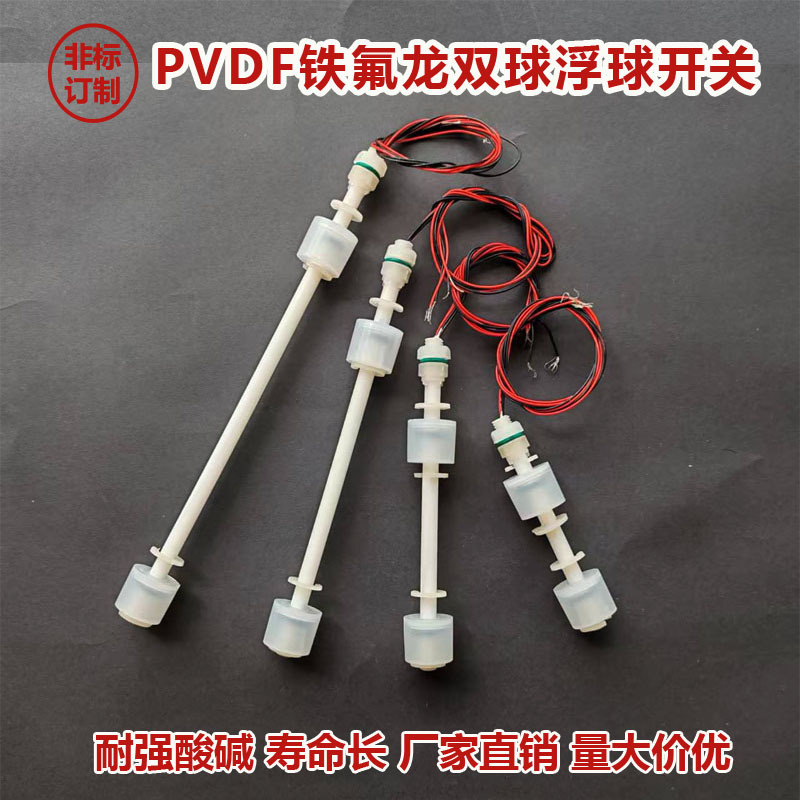 PVDF pengendali level float ganda plastik PTFE tahan alkali asam kuat saklar apung kecil Teflon