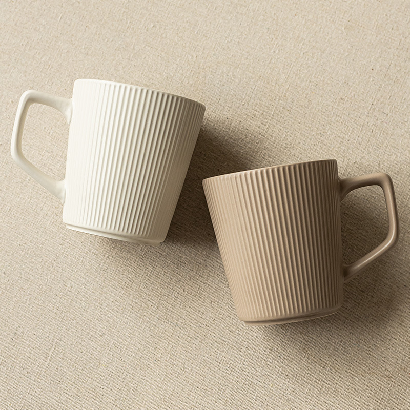 Cangkir air keramik pola vertikal gaya sederhana, cangkir rumah tangga tampak tinggi, cangkir kapasitas besar, cangkir pasangan untuk kantor grosir
