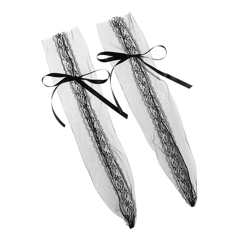 Kaus kaki renda jala transparan, Kaos Kaki setengah betis renda tali kristal ultra tipis lembut gadis peri Lolita