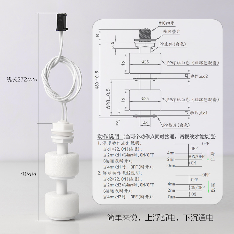 Pengendali apung kecil/saklar apung/saklar level air/sensor/ZP10010-2-52 bola plastik ganda