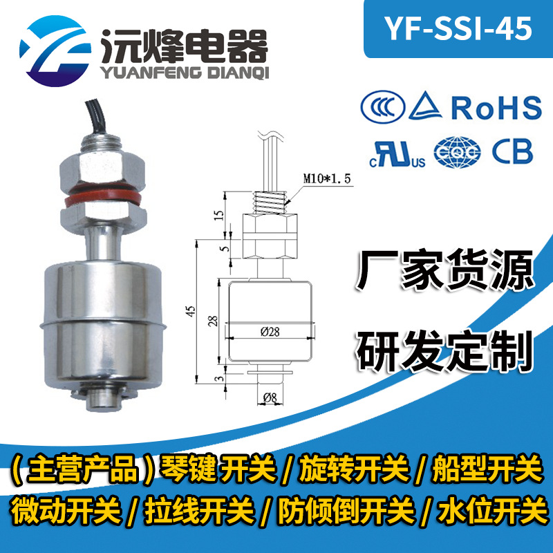 Pasokan pabrik tingkat air rendah float switch alarm cetakan suhu mesin 304 cairan baja tahan karat tingkat float switch