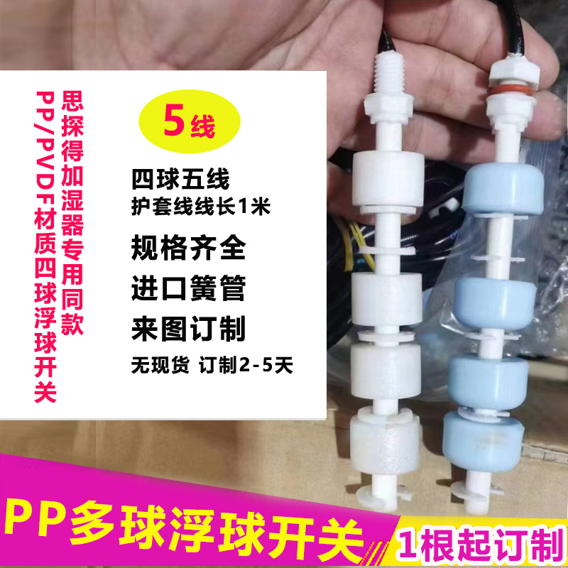 Sikede pelembap udara plastik PP multi-kontrol, empat bola, saklar bola melayang kecil, pengendali tingkat cairan, pengisian air dan drainase