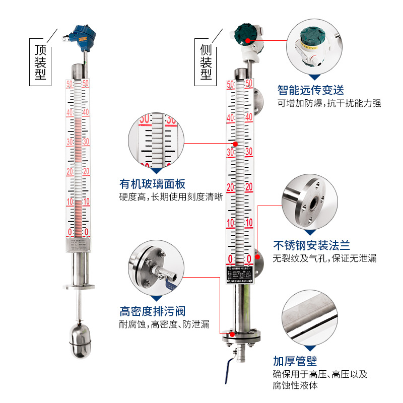 UHZ Magnetic Flyover Meteran Tingkat Cairan dengan Stainless Steel Jarak Jauh Pengukur Tingkat Minyak Sisi Atas Pelampung Pelampung Magnetik Tahan Ledakan Tahan Suhu Tinggi