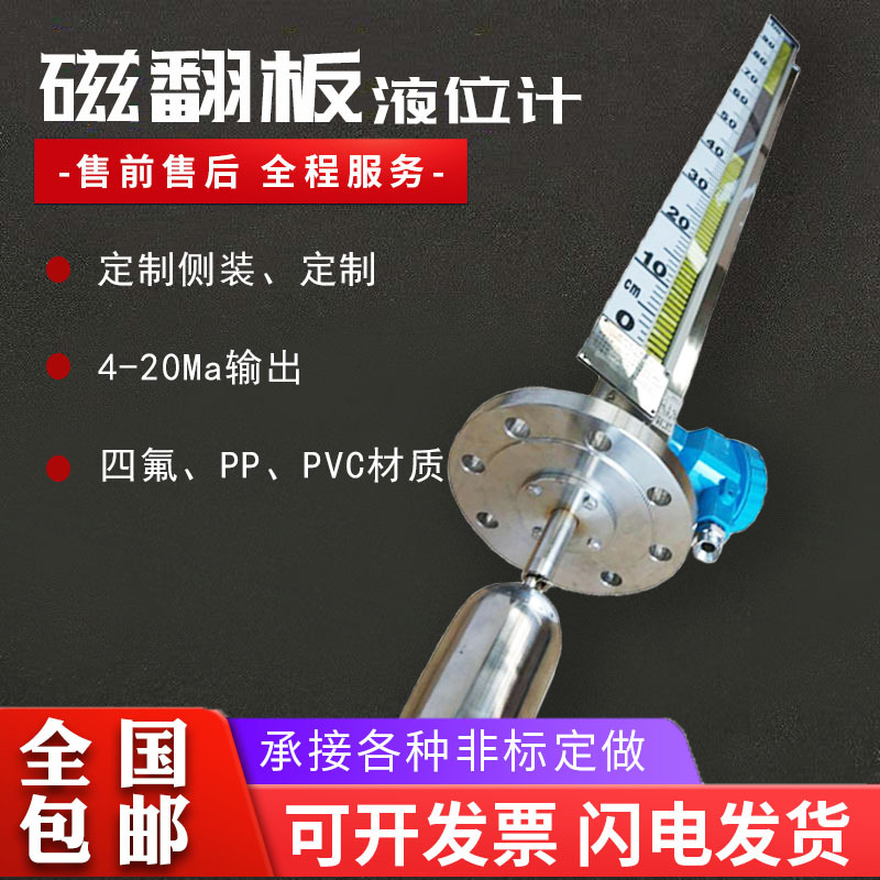 Pengukur level penutup magnetik, pengukur level penutup magnetik tanpa area buta, lapisan PTFE pp dua warna, transmisi jarak jauh, float magnetik