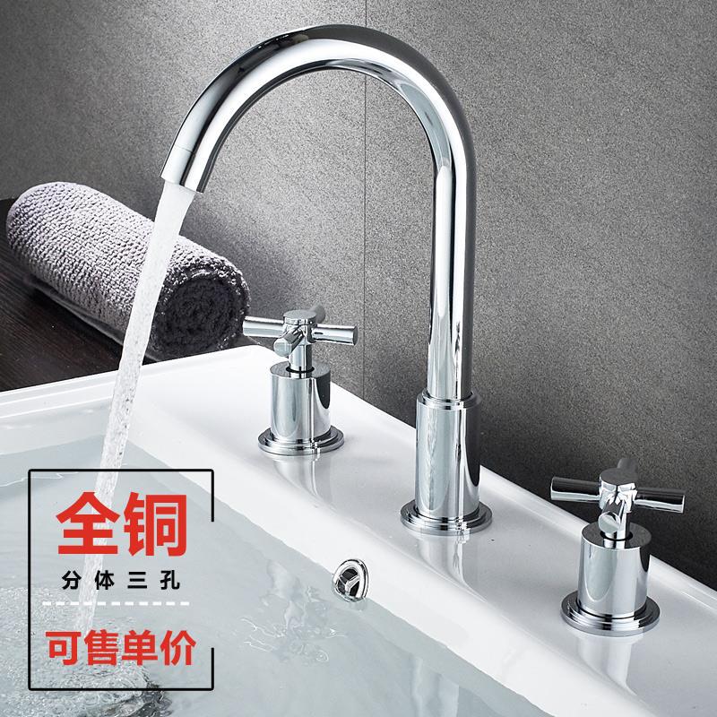 Keran tembaga pegangan ganda, keran tiga lubang terpisah, keran wastafel, saklar roda tangan ganda, kontrol ganda dapat diputar