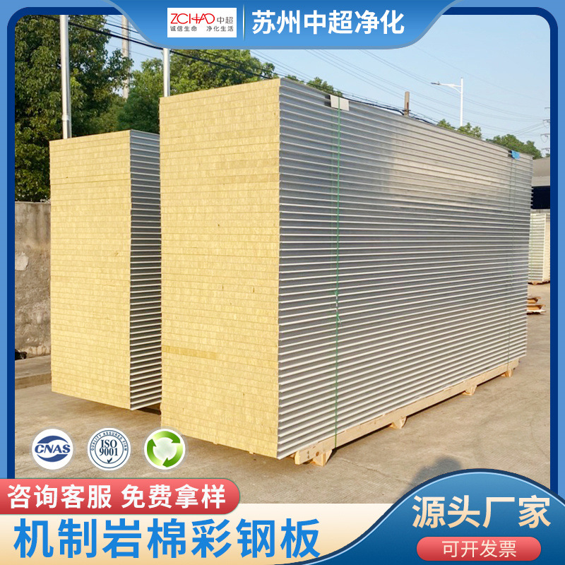 Panel wol batu produksi mekanis, panel baja berwarna, panel pemurnian ruang bebas debu, panel sandwich wol batu isolasi dinding tahan api, panel isolasi wol batu.