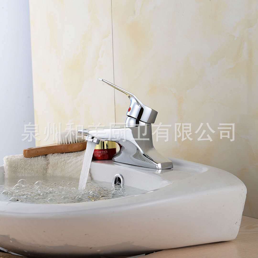 Keran wastafel, keran kamar mandi tembaga dingin dan panas, keran wastafel satu lubang, keran wastafel atas