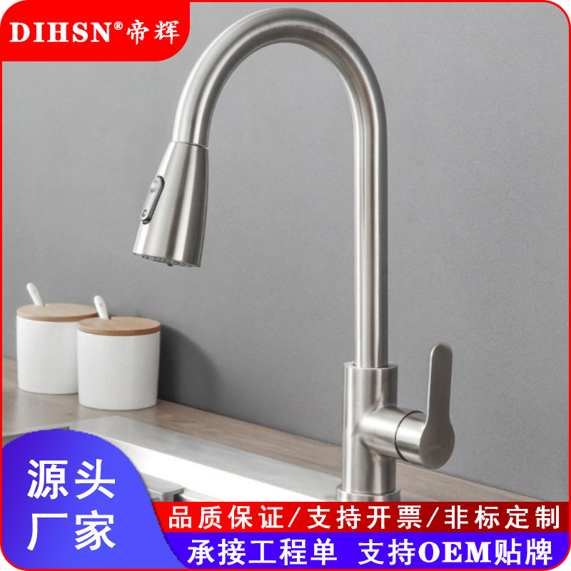 Keran tarik hitam air panas dan dingin, keran wastafel dapur tahan air panas dan dingin, keran cat stainless steel yang dapat ditarik