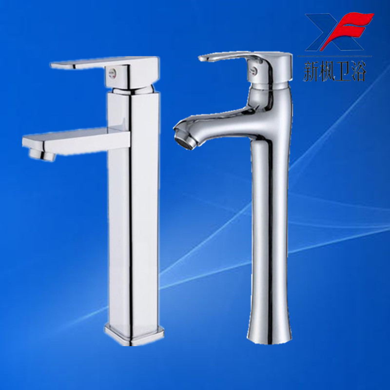 Keran air panas dan dingin kamar mandi, keran air panas dan dingin persegi tinggi lubang tunggal baskom artistik keran air panas dan dingin