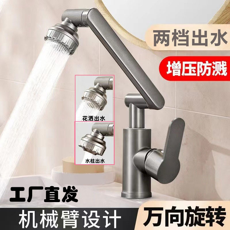 Keran Baskom Cuci Tangan Keran Lengan Robot Rotasi Panas dan Dingin Keran Keran Baskom Cuci Wajah Kamar Mandi Dapur