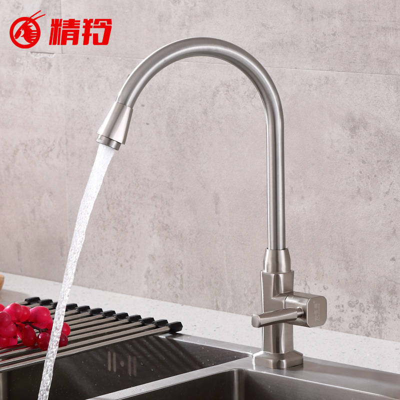 Keran dapur rumah tangga brushed frog, keran wastafel piring dingin tunggal 360 derajat berputar keran dapur dan kamar mandi