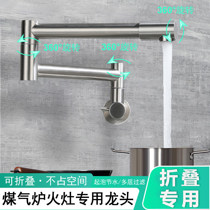 Keran Lipat Dapur Dingin Tunggal Model Masuk Dinding 304 Keran Keran Anti Percikan Baskom Cuci Sayur untuk Kompor Putar Universal Teleskopik