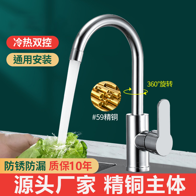 Keran dapur panas dan dingin, keran wastafel sayur rumah tangga, keran air panas dan dingin, keran dingin tunggal tembaga dua dalam satu
