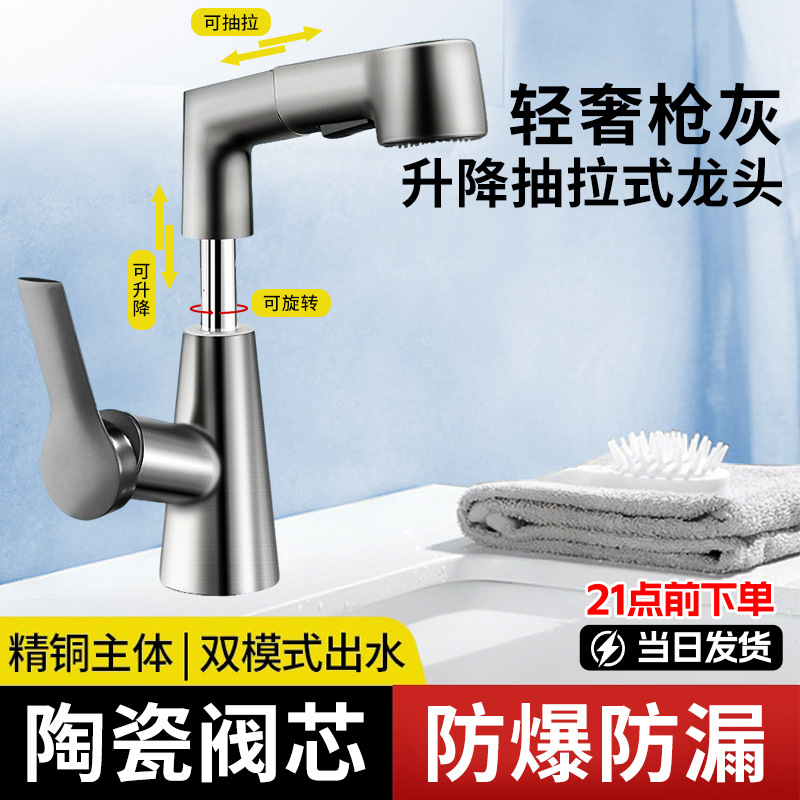Huali keran dapur abu-abu, keran pull-out berputar dapat ditarik panas dan dingin Internet selebriti