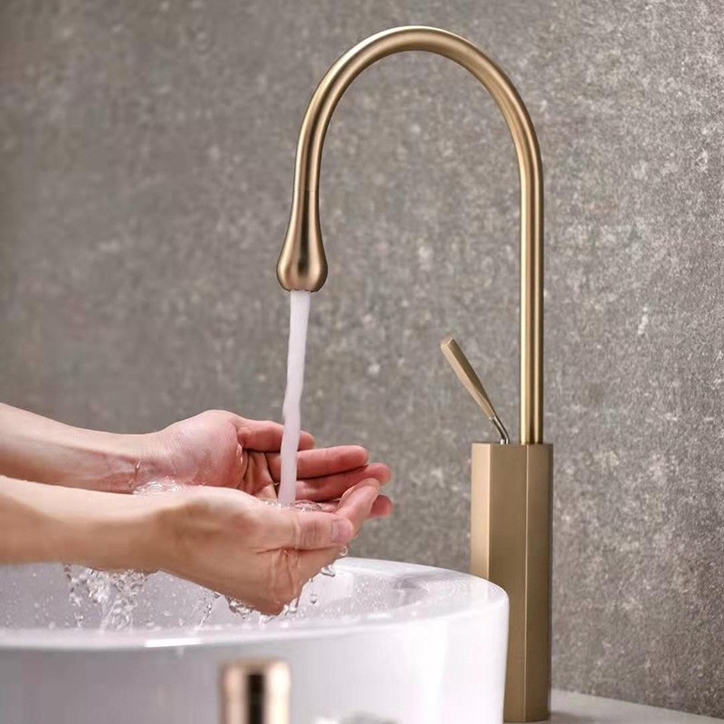 简约台上中盆混合水高低款龙头酒店会所拉丝金色黑色水滴面盆龙头