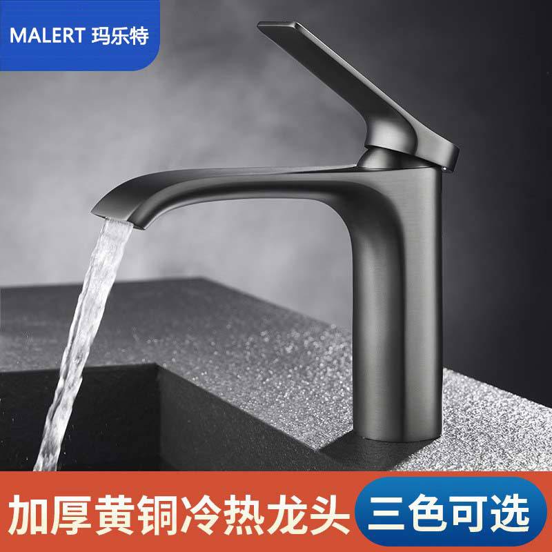 掌柜推荐 枪灰拉丝金家用浴室面盆水龙头 全铜单孔冷热洗脸盆龙头