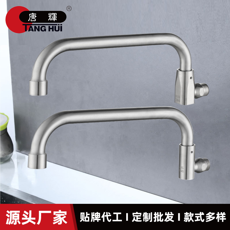 Keran dapur segi delapan dari baja tahan karat 304 dengan inti tembaga, keran wastafel dingin tunggal yang dapat diputar untuk penggunaan hotel.