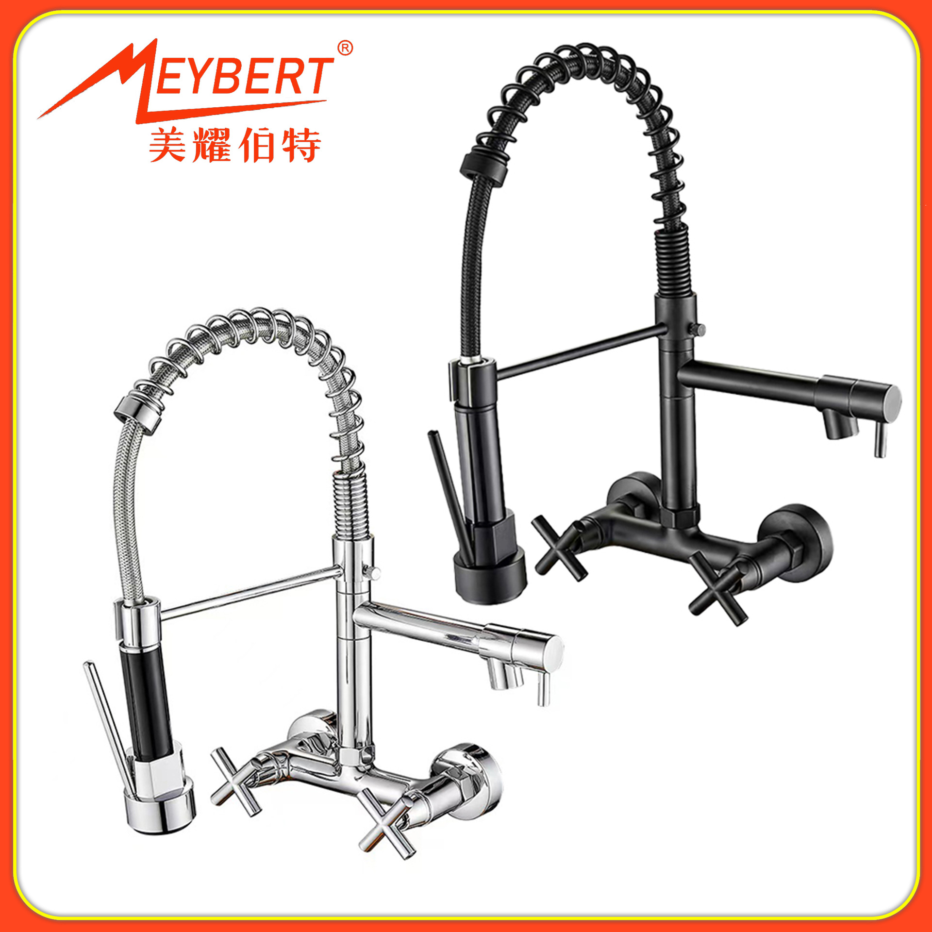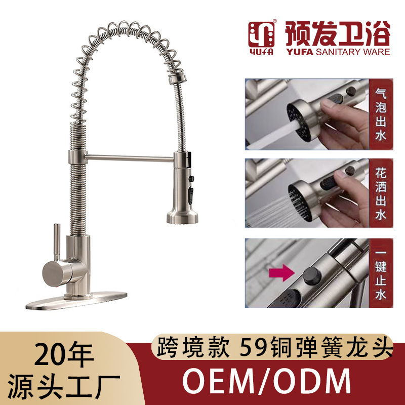 全铜美式龙头 跨境弹簧抽拉万向冷热水龙头洗菜盆单柄厨房水龙头