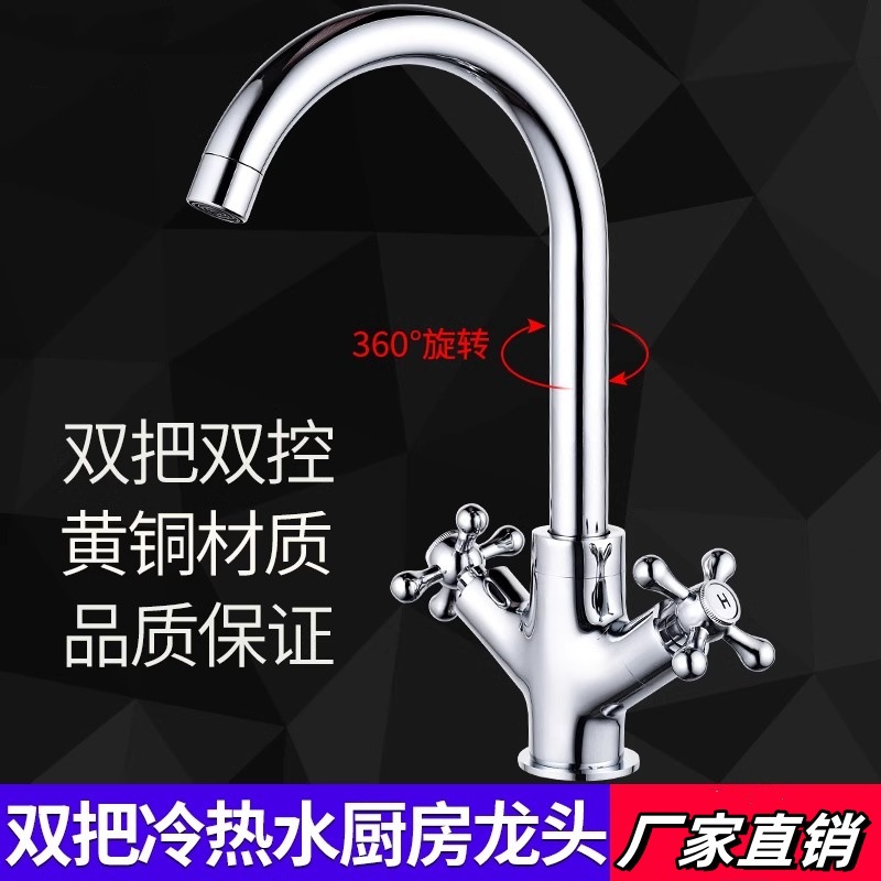 Keran Dapur Kontrol Ganda Keran Dapur Keran Wastafel Keran Cuci Sayuran Keran Keran Bisa Berputar Seluruh Tubuh Tembaga Keran Panas dan Dingin Ganda