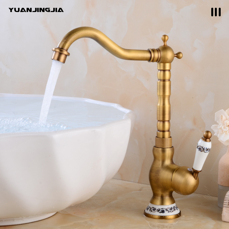 Keran Baskom Tembaga Retro Prancis Keran Baskom Cuci Tangan Balkon Rumah Keran Keran Dapur Bisa Diputar Panas dan Dingin