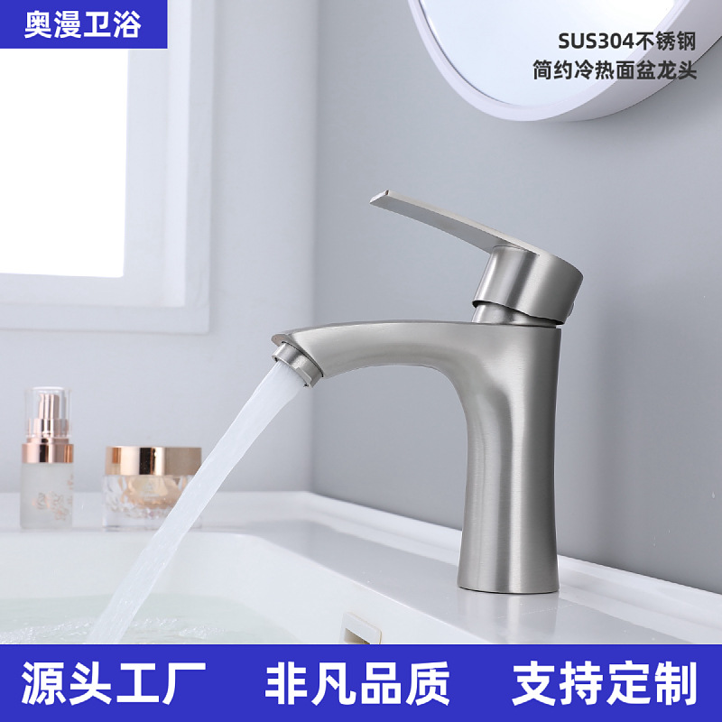 贸易304不锈钢精铸洗脸盆水龙头冷热无铅龙头卫生间面盆龙头