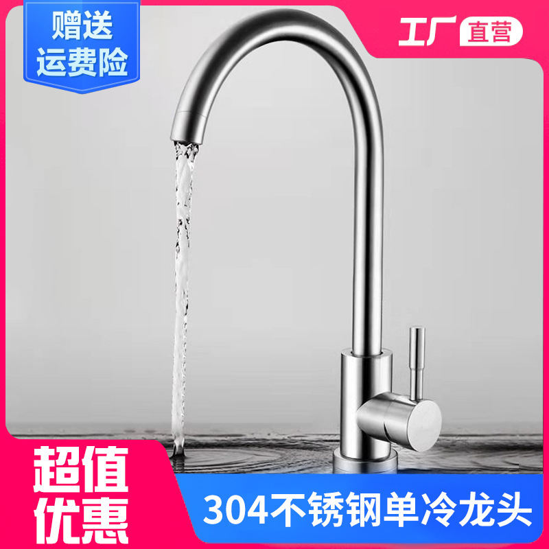 Keran dingin tunggal 304 stainless steel, keran dapur tahan percikan berputar untuk mangkuk sayur rumah tangga, keran panas dan dingin