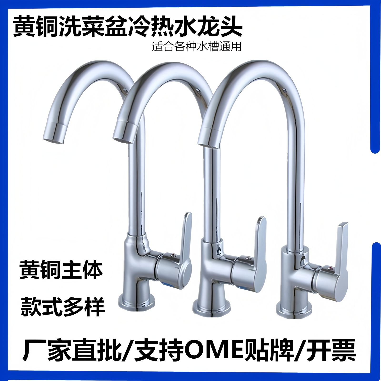 Keran dapur panas dan dingin wastafel, dapur rumah tangga dan kamar mandi baskom cuci sayuran kolam cuci kuningan berputar pabrik grosir